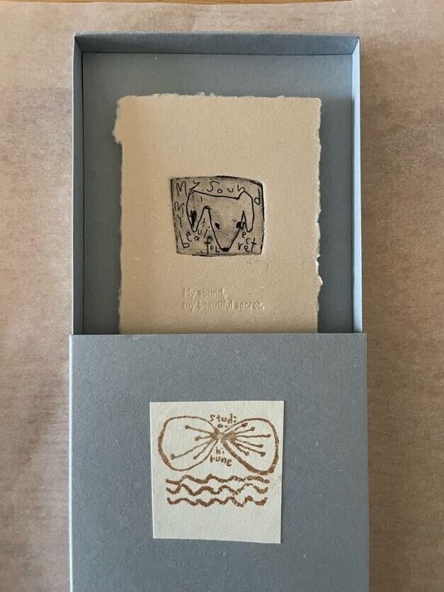 コットンペーパーに、小さな版画を刷って収めました。