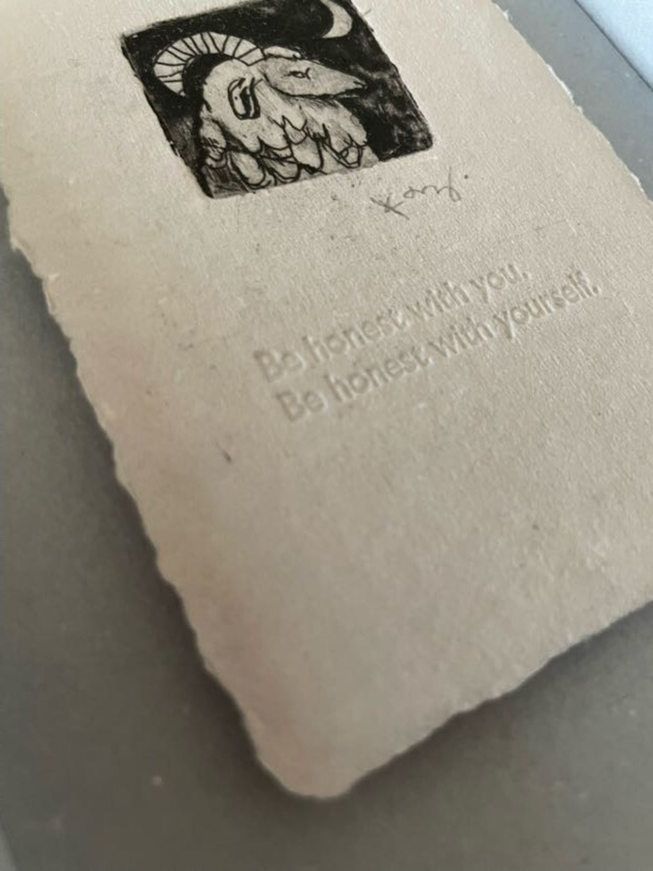 樹脂活版でから押し(エンボス)をして、ひとつひとつに短い言葉を添えました。