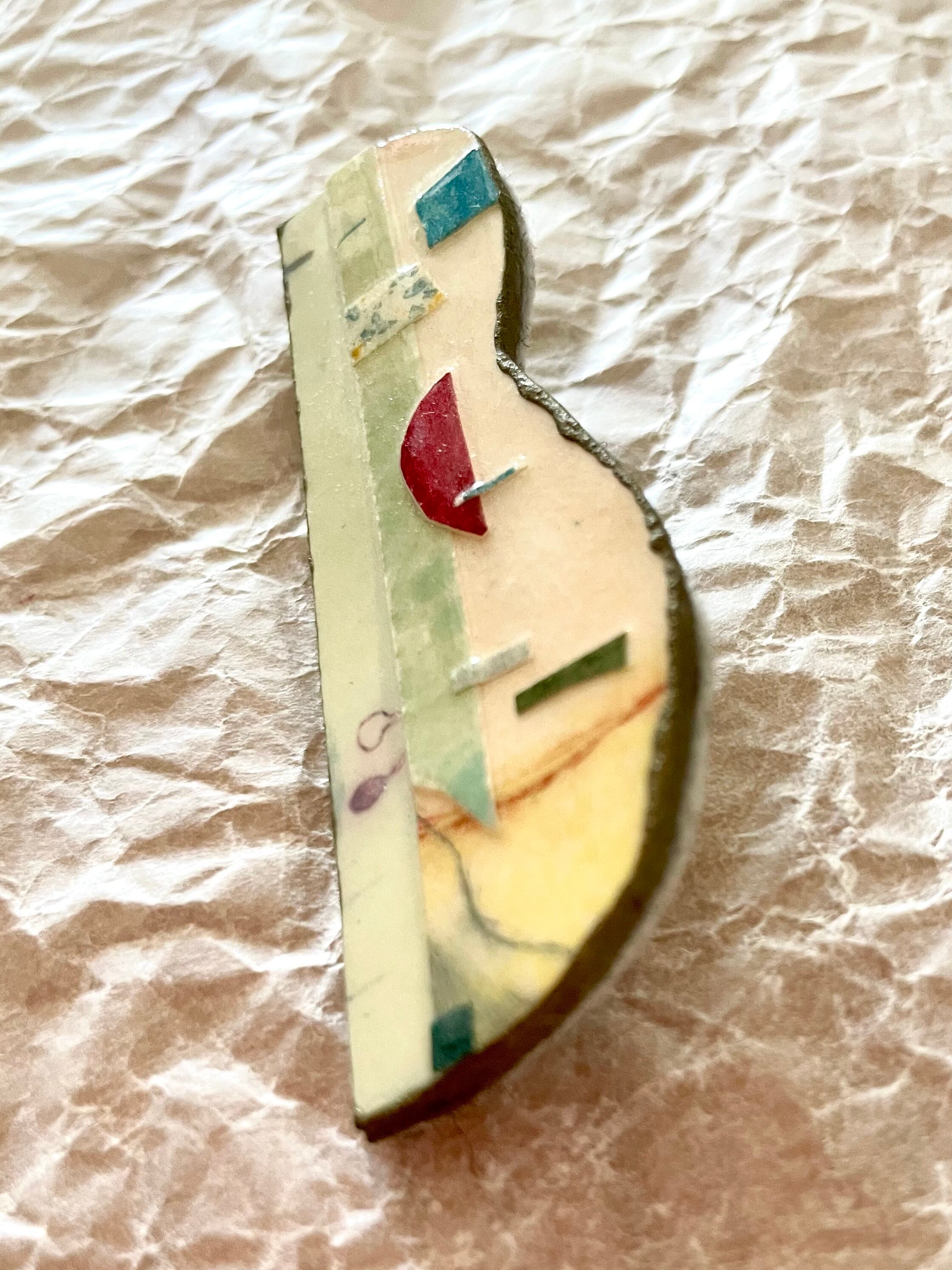 版画作品を素材として、切り取り、重ね、コラージュして生まれたブローチです。