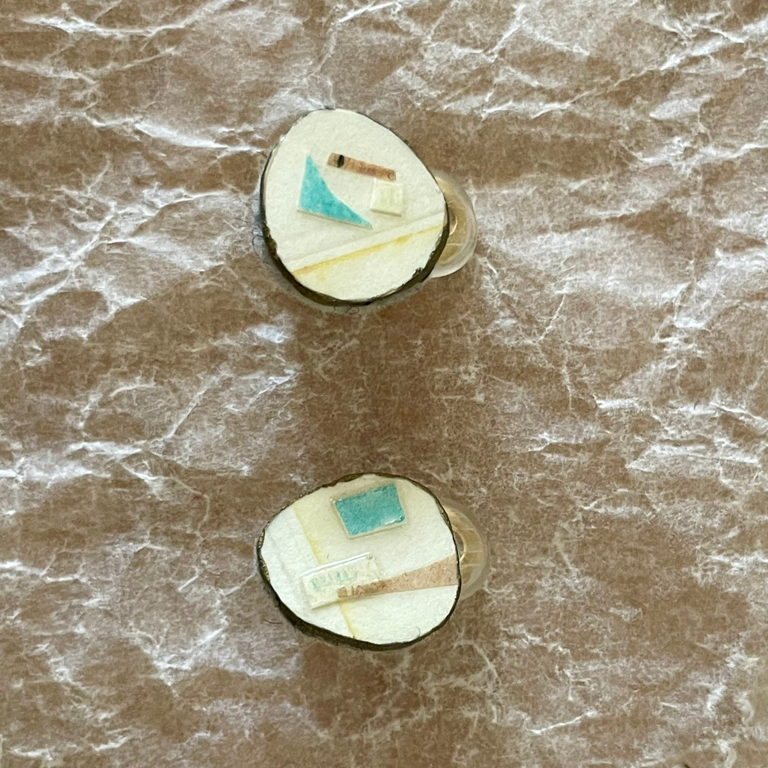 版画作品を素材として、切り取り、重ね、コラージュして生まれたイヤリングです。