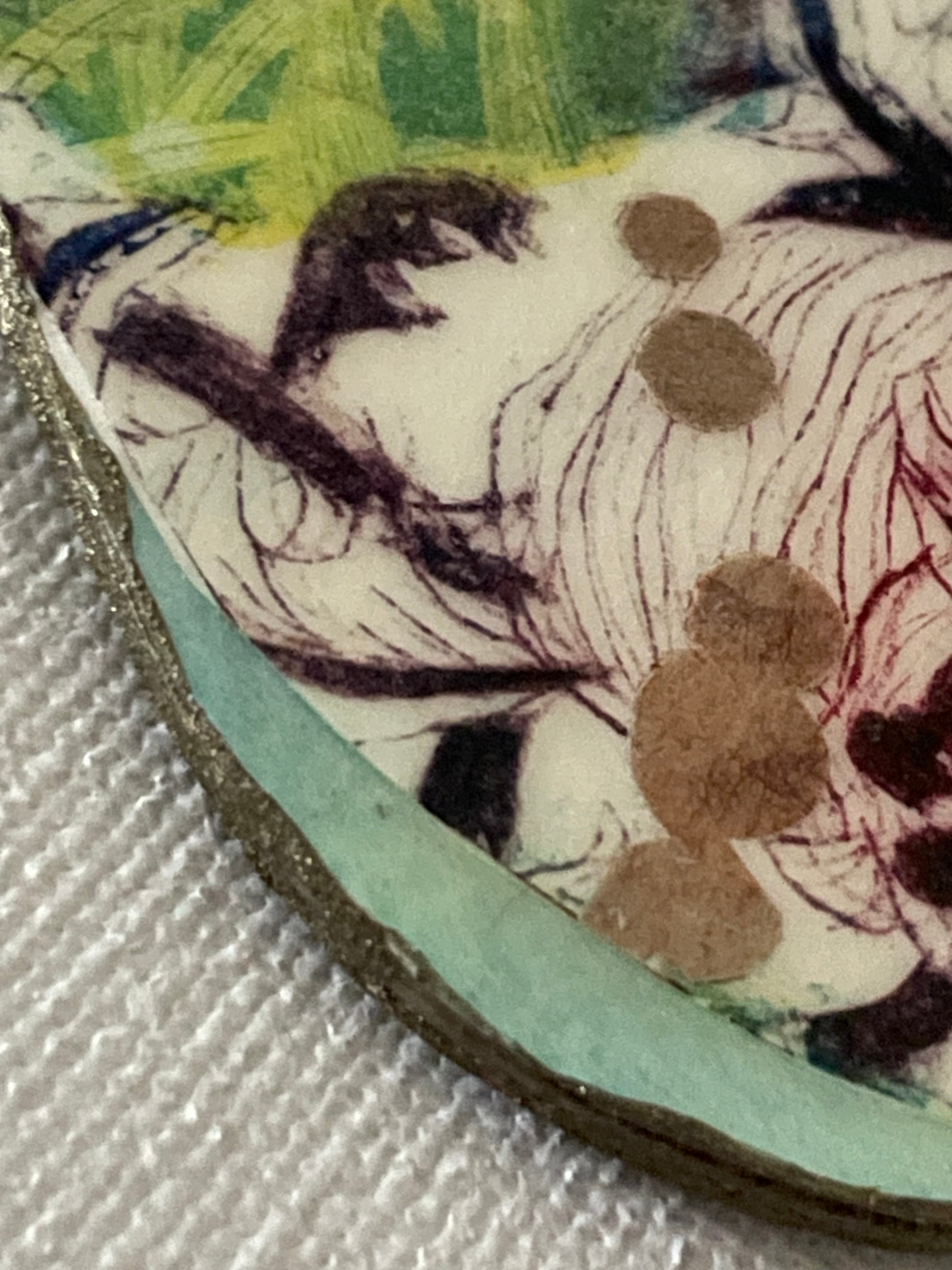 もともとは版画作品の一部。切り取って、重ねて、金彩を足して、